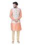 Kurta Jacket Set for Men, Full Sleeves Mandarin Collar Ethnic Wear Jacket Set for Festival, Wedding, Party Blended Viscose (Pink)