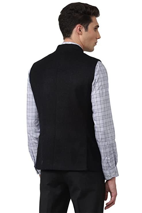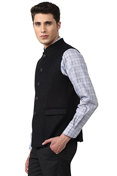 Give a smart finish to your ensemble in these Black Textured Nehru Jacket from Van Heusen by Van Heusen.